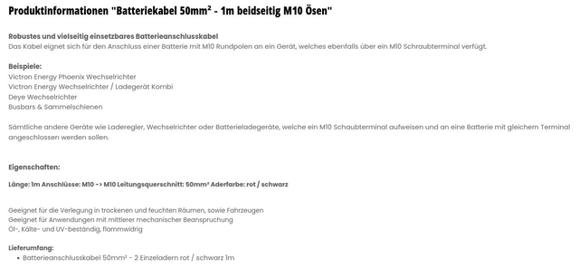 • Robustes und vielseitig einsetzbares Batterieanschlusskabel