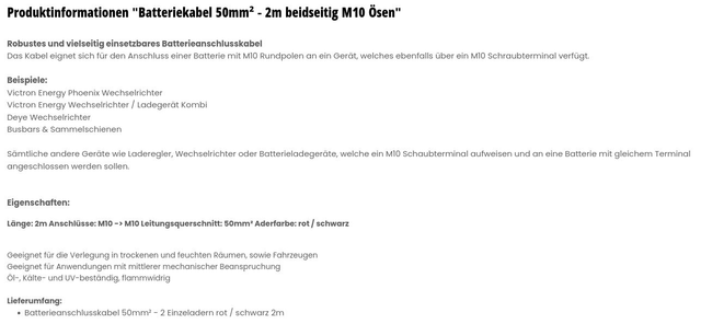 Batteriekabel 50mm² - 2m beidseitig M10