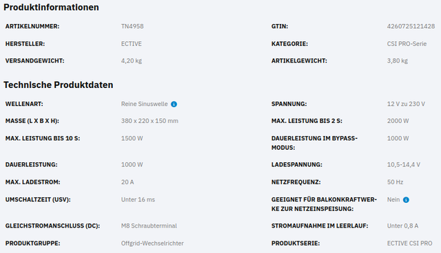 Bis zu 2000 W Spitzenleistung für kurzzeitige Lastspitzen