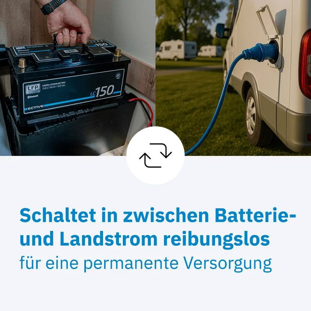 Wählbare Ladekennlinien für Nass-, AGM-, Gel- und Lithium-Batterien