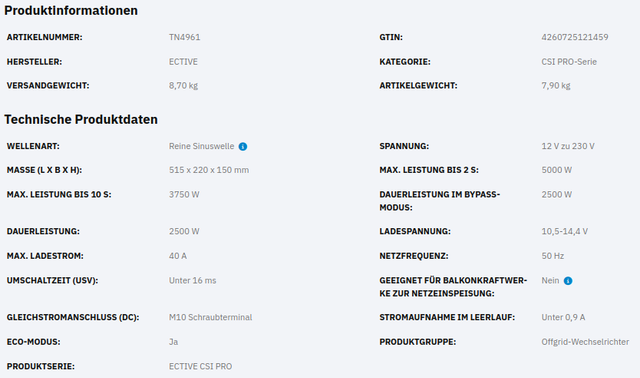 Bis zu 5000 W Spitzenleistung für kurzzeitige Lastspitzen