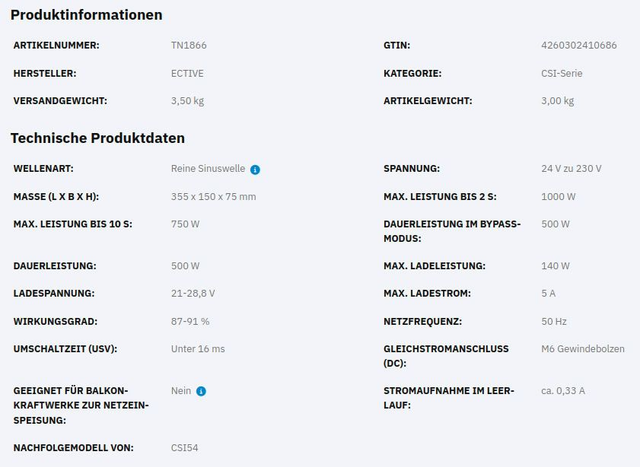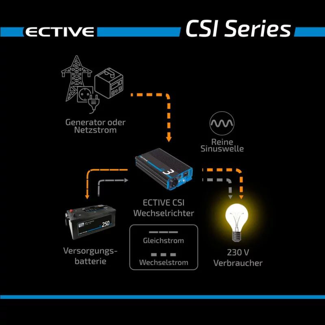 ECTIVE CSI 5 500W/24V Sinus-Wechselrichter mit Ladegerät, NVS- und USV-Funktion