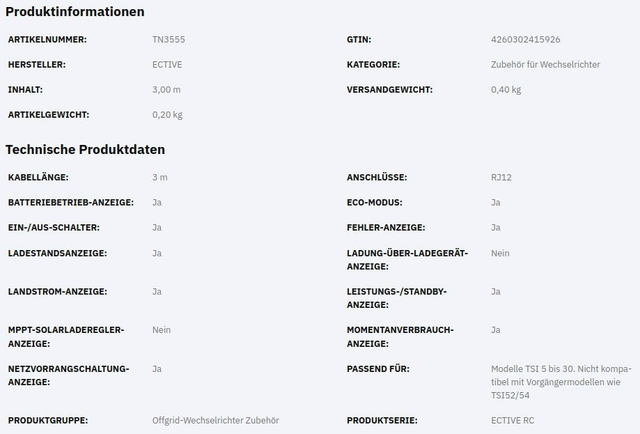 ECTIVE RC2 Fernbedienung mit Ladestandsanzeige für Wechselrichter