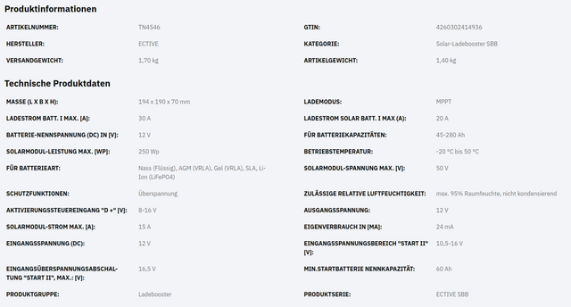 ECTIVE SBB 30 12V auf 12V Ladebooster mit integriertem Solarladeregler 30A