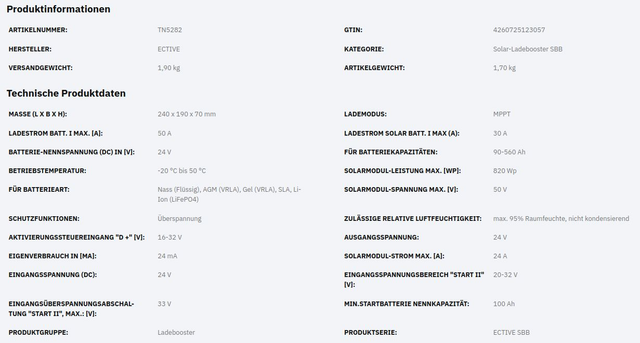 ECTIVE SBB 50 24V auf 24V Ladebooster mit MPPT-Laderegler 50A