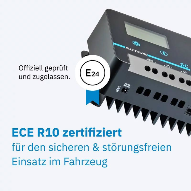 Über die RS485 CI-/CAN-Bus-Schnittstelle lässt sich der Regler nahtlos in die Fahrzeugelektronik einbinden.