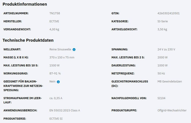 ECTIVE SI 10 Sinus-Inverter 1000W/24V Sinus-Wechselrichter