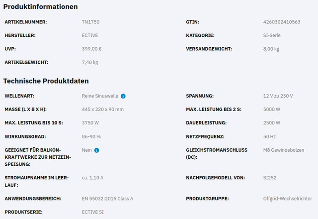 ECTIVE SI 25 2500W/12V Sinus-Wechselrichter mit reiner Sinuswelle