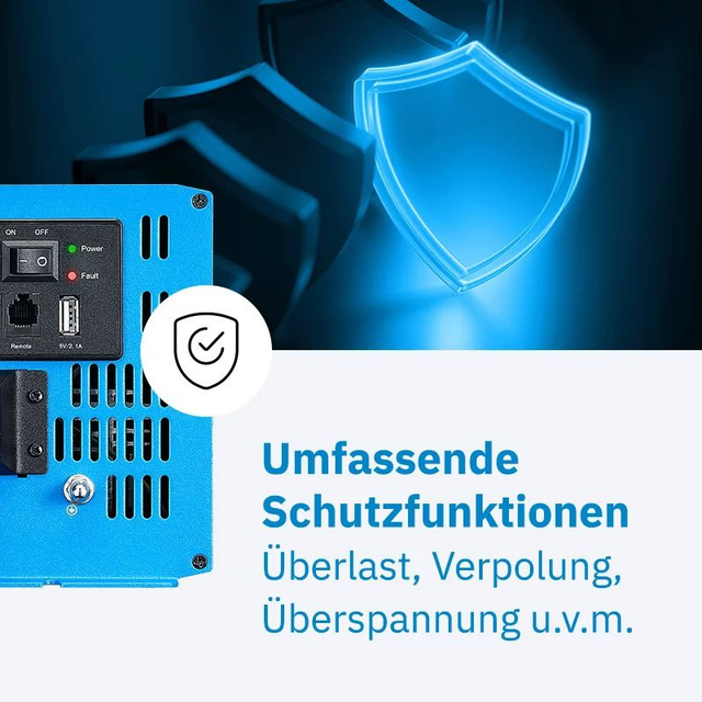 • Umfassender Schutz vor Überspannung, Unterspannung, Überlast, Überhitzung und Verpolung