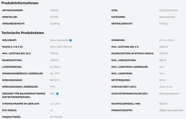 ECTIVE SSI 25 2500W/24V Sinus-Wechselrichter mit MPPT-Laderegler, Ladegerät, NVS- und USV-Funktion