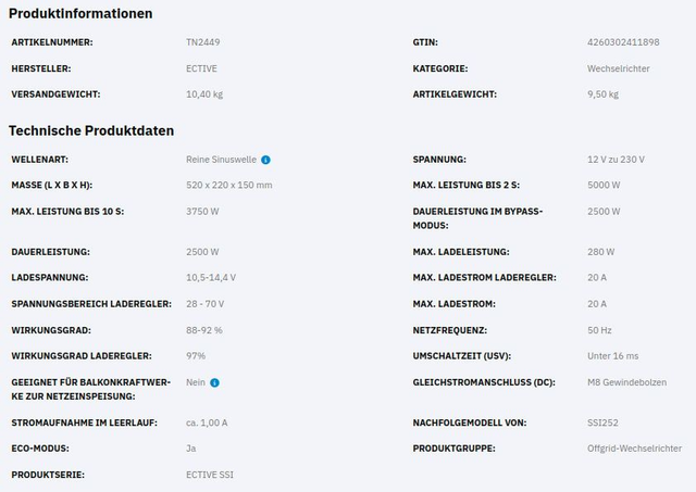 ECTIVE SSI 25 4in1 Sinus-Inverter 2500W/12V Sinus-Wechselrichter mit MPPT-Solarladeregler, Ladegerät und NVS