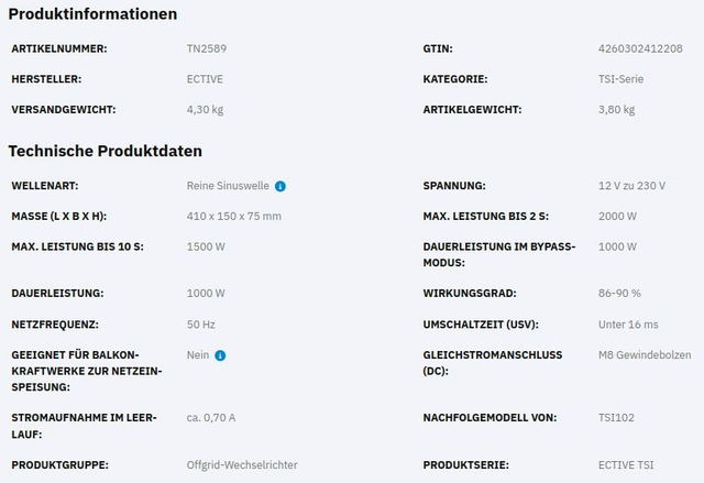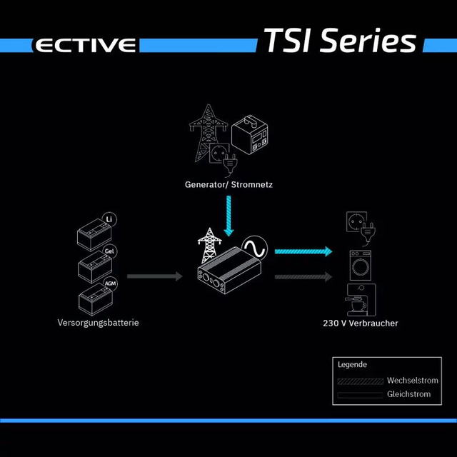 ECTIVE TSI 10 1000W/12V Sinus-Wechselrichter mit NVS- und USV-Funktion