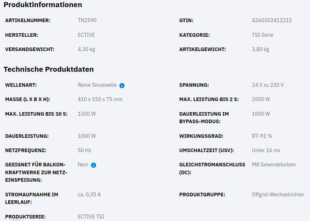ECTIVE TSI 10 1000W/24V Sinus-Wechselrichter mit NVS- und USV-Funktion