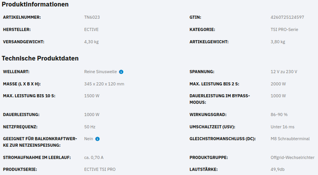 ECTIVE TSI 10 PRO 1000W/12V Sinus-Wechselrichter mit Netzvorrangschaltung