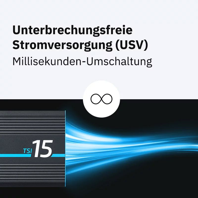• Unterbrechungsfreie Stromversorgung dank Netz- und Batterie-Vorrangschaltung