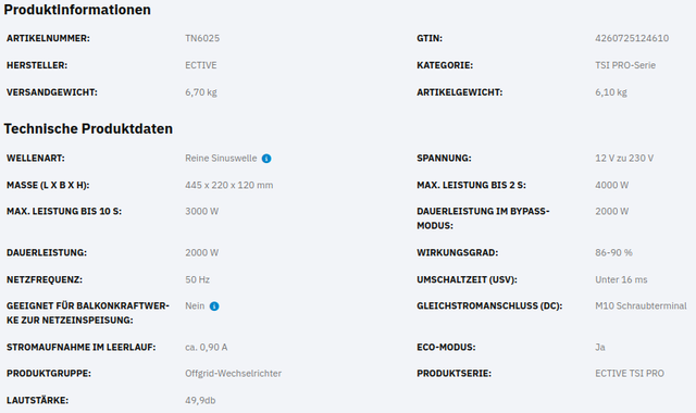 • Bis zu 4000 W Spitzenleistung für kurzzeitige Lastspitzen