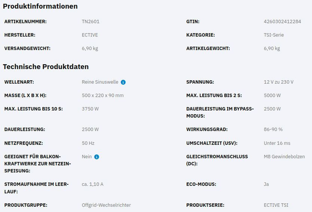ECTIVE TSI 25 2500W/12V Sinus-Wechselrichter mit NVS- und USV-Funktion