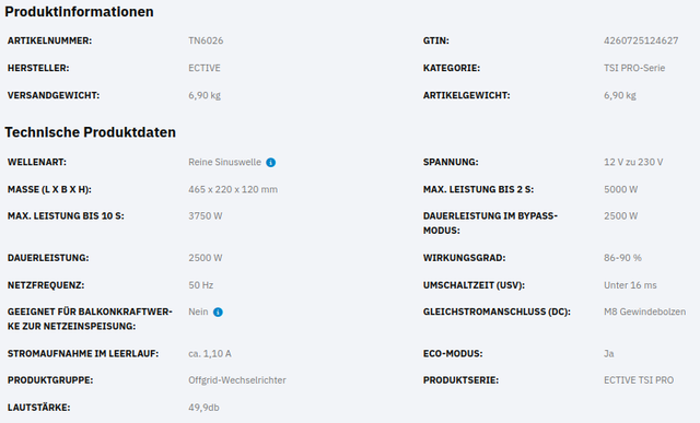 • Bis zu 5000 W Spitzenleistung für kurzzeitige Lastspitzen