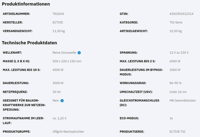 ECTIVE TSI 30 3000W/12V Sinus-Wechselrichter mit NVS- und USV-Funktion