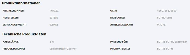 ECTIVE Verbindungskabel für SC Pro MPPT Solar-Laderegler Gen. 2