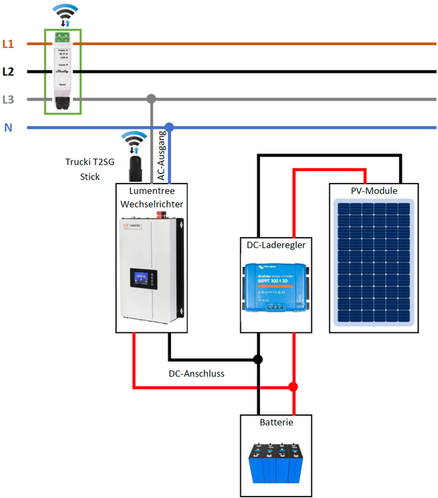 Netzgekoppelter Wechselrichter mit Begrenzersensor,