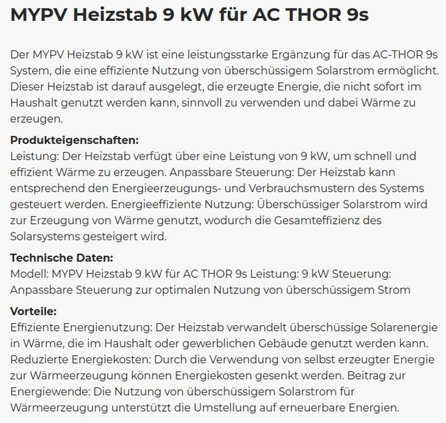 Der MYPV Heizstab 9 kW eignet sich ideal für Haushalte, Gewerbebetriebe und Industrieanlagen, die Solarstrom erzeugen und überschüssige Energie sinnvoll nutzen möchten. Er kann beispielsweise zur Warmwasserbereitung oder zur Beheizung von Räumen eingesetzt werden. Durch seine intelligente Steuerung passt er sich flexibel den Energieflüssen an und trägt zur Maximierung der Energieeffizienz bei.